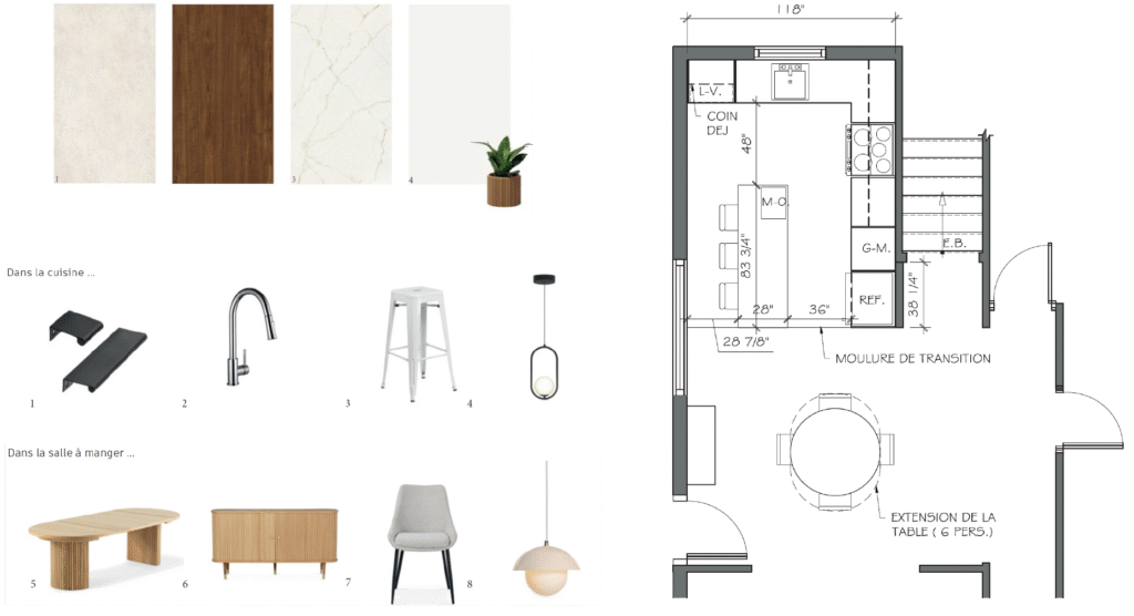 – Sélection des matériaux et du mobilier